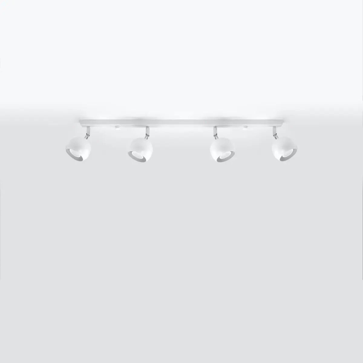 Moderne weiße Deckenleuchte Retro 4 aus Stahl – vier Lichtquellen auf elegantem Längsbalken für große Wohnräume.