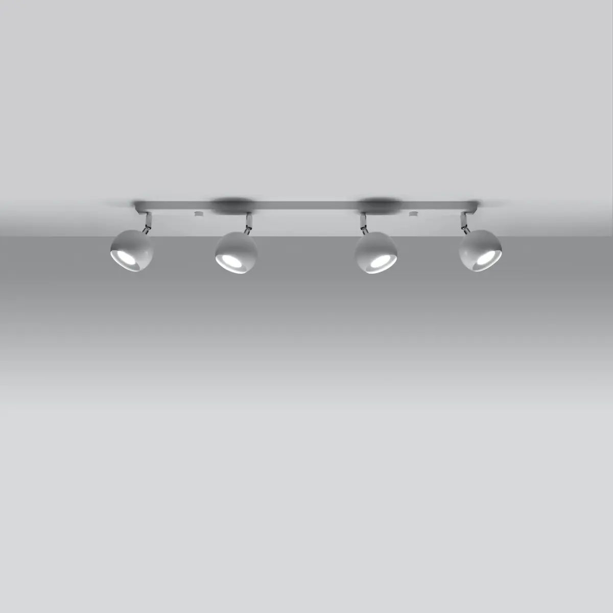 Die Deckenleuchte Retro 4 überzeugt durch ihre streckenweise Wirkung: Vier GU10-Fassungen verteilen sich gleichmäßig auf einem 80 cm langen weißen Stahlträger und sorgen so für eine helle, ausgewogene Ausleuchtung auch großer Räume. Das längliche Format macht sie zur idealen Wahl über Esstischen, Kücheninseln oder breiten Wohnbereichen. Klar in der Form, vielseitig im Einsatz – die Retro 4 ist eine Deckenleuchte, die sich in moderne wie elegante Interieurs gleichermaßen einfügt.