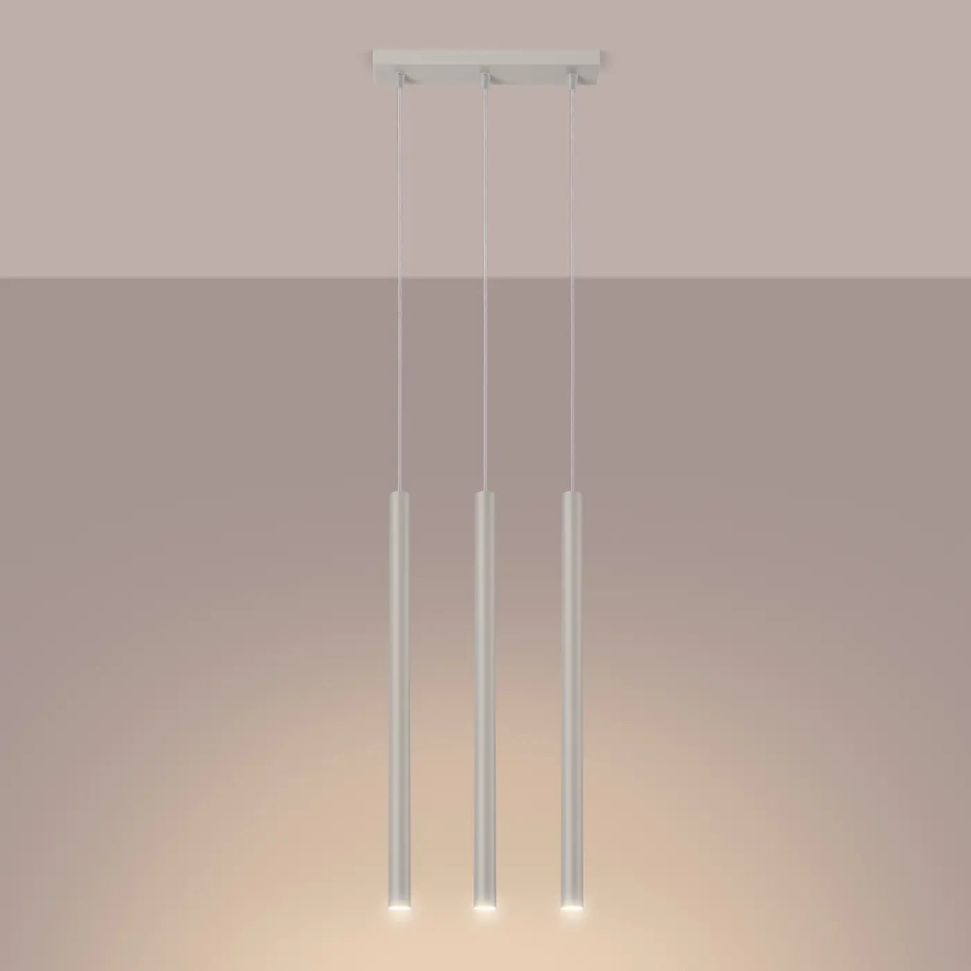 Beige Pendelleuchte aus Stahl im minimalistischen Design – die Matita 3 setzt mit drei schlanken Zylinderschirmen einen eleganten, warmen Dreifachakzent. Der feine Beigeon verleiht jedem Raum eine ruhige, einladende Atmosphäre und fügt sich harmonisch in moderne und skandinavische Einrichtungen ein. Für alle, die subtile Eleganz mit klarer Formensprache und großzügiger Lichtwirkung suchen.