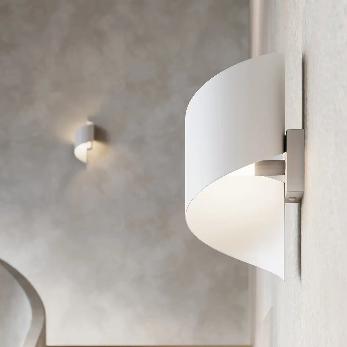Moderne weiße Wandleuchte aus Stahl – die Tornado besticht mit ihrer markanten Spiralform und taucht jeden Raum in warmes, weiches Licht mit einem faszinierenden Wandeffekt.