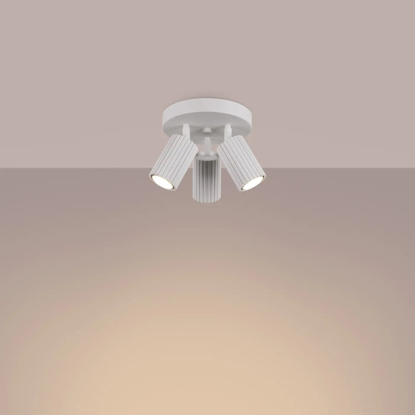 Japandi witte aluminium plafondlamp met drie lichtpunten in compact design en geribbelde afwerking. Deze plafondlamp brengt rust, balans en moderne eenvoud samen in één strak ontwerp. Dankzij de drie GU10 fittingen geniet je van heldere en gerichte verlichting, ideaal voor de woonkamer, hal of slaapkamer.