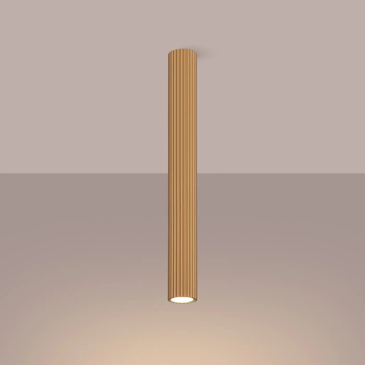 Japandi gouden aluminium plafondlamp met ribbel design en extra lange, slanke vorm voor luxe en moderne verlichting. Deze plafondlamp van 60 cm hoog zorgt voor een krachtige, gerichte lichtbundel en geeft je interieur een exclusieve en elegante uitstraling. Ideaal voor hoge plafonds in de hal of vide, maar ook perfect als stijlvolle accentverlichting in de woonkamer of slaapkamer. Het minimalistische Japandi ontwerp straalt rust, eenvoud en balans uit.